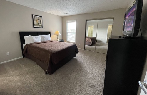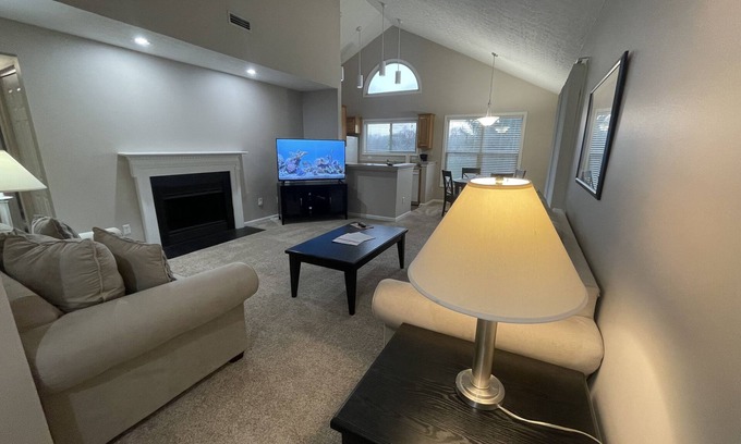 Enjoy 96 acres of woodlands, pond, fitness center, privacy, plenty of parking and tons of space! Way more space than a hotel and cheaper too! Every apartment comes with Wifi, Roku TV and washer/dryer set.