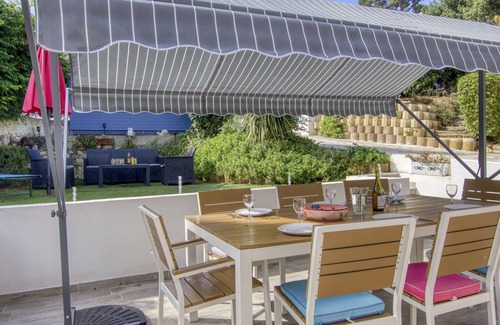 Beautiful, cosy house "De Manou", semi-detached. 1.5 km from the centre of Six-Fours-les-Plages, 12 km from the centre of Toulon, 41 km from the centre of Cassis, on a slope, in the residential district, 5 km from the sea. Private: well-kept garden 580 m2 (fenced) with wildlife garden and trees, courtyard, parking on the premises. Shop 1.5 km, bus stop 1 km, railway station "Toulon" 12 km, sandy beach "Bonnegrâce" 5 km. Golf course (18 hole) 18 km. Hiking paths: Iles des Embiez, Porquerolles, Cassis. Neighbourhood highly sensitive to noise. Quietness and good behaviour expected.