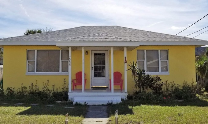 Beautiful and warm. Come relax and enjoy your spring & summer.FREE WIFI & TV CABLE.This beachside 2 bedroom 1 bath house is newly renovated and located just within steps to the beach and historical Flagler Avenue. You are within walking distance to restaurants, shops, bars, and the best beach in Florida.The house has a nice size living room with a large couch to watch TV, or just lay back and relax and read a book after the beach. The full kitchen has all you need if you like to cook and also a table to dine. The master bedroom has a king bed along with a flat screen TV and plenty of closet space. along with bureau dressers.The full bath has a shower and bathtub and is located in the hallway next to both bedrooms. The second bedroom has 2 twins and plenty of closet space. The back porch is enclosed with your own new washer and dryer, and a view to the privately fenced in back yard. To grill or just relax after a long day. at the beach,, Come on down ,unwind and enjoy this beautiful piece of paradise.