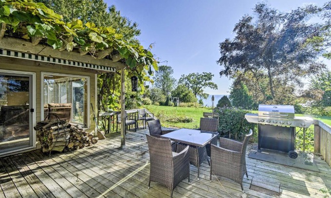 Deck and Fire Pit Waterfront Lake Michigan Escape | House in Algoma