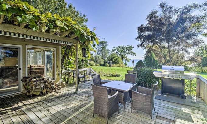 Deck + Fire Pit: Waterfront Lake Michigan Escape | House in Algoma