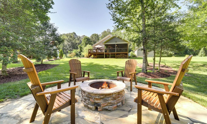 'The River House Retreat' is the perfect place to enjoy the mountain scenery and calming waters of the Tuckasegee! This 3-bed, 2-bath vacation rental home features a fire pit and a natural stone staircase for easy river access. It is also located near restaurants, hiking trails, and waterfalls — perfect for making adventurous memories!