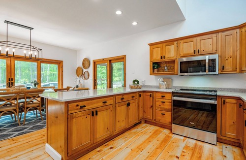 Unsalted Memories is a home that can be full of activity, quiet contemplation, sweet musings, or just simply contented bliss. This five bedroom, five bathroom home is tucked in among the trees to create a quiet oasis, a perfect place for family barbecues out on the deck, making s'mores at the fire pit, playing badminton in the backyard, or just simmering in the outdoor hot tub. Your dock slip is just steps away. Follow the stone path across the level lawn down to your private lakefront. Inside, enjoy a home that is full of warmth - comfortable and cozy, and yet spacious. Just outside your door, you’ll love exploring the Blakeslee Community. Take a stroll or jog on the quiet streets, lined with tall pines and other mature trees. For the more adventurous, head for the woods and hike the Blakeslee trails. You can also play tennis at the community tennis courts or swim in the community indoor pool. Unsalted Memories is where memories are made. Book your stay today!