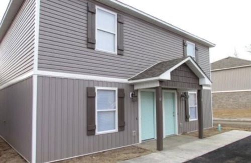 Far south Fort Snith, just a mile from Choctaw Pocola. 2 story duplex with washer and dryer upstairs with bedrooms. On site parking spaces provided. Large full kitchen with dishwasher.and main needs coveted Just steps away from access to Elementary School playground.