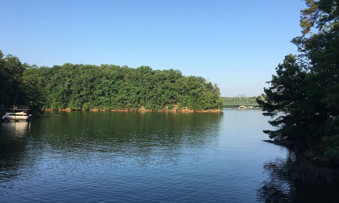 - A small peninsula sticks out just enough to stop the heavy wakes of water so our dock ( and your boat) Do not rock all day, with "big open water" 100 yards away. Its pure good luck and we are thrilled with it as we have had other lake homes where the dock did rock all day.