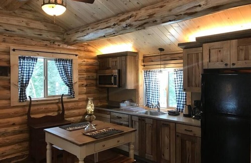 If you are looking for an authentic log cabin in the woods of Montana, this is the place for you! We have three log cabins on our organic cattle ranch out in the country and away from it all, yet you can drive on all paved roads to Kalispell in only 20 minutes (13.5 miles), Whitefish in 35 minutes (27 miles), or to the west entrance of Glacier National Park in about an hour. Our cabins are hand crafted by the local Amish and have all you need for a cozy and comfortable escape including AC for those hot summer days, and an on-site laundry. You will enjoy the convenience of a kitchenette, a small table for eating, a seating area, a queen bed, and a full bathroom. The kitchenette includes a fridge/freezer with an ice maker, microwave, toaster, coffee maker with a reusable filter, and a 2-burner induction cooktop.