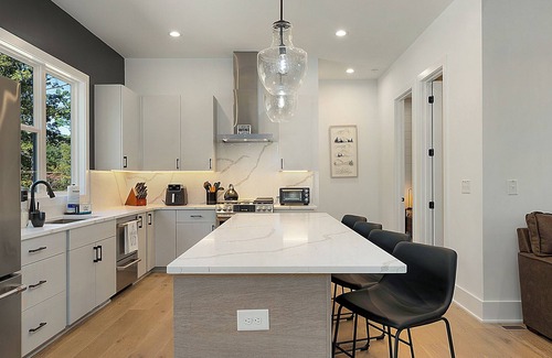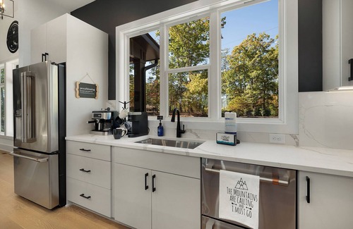 Escape to this luxurious 4-bedroom, 4-bathroom mountain retreat,called Deer Crossing. Just 7 minutes from downtown, where modern amenities meet rustic charm. Spanning three levels, this spacious cabin comfortably sleeps 10 guests, making it the perfect getaway for families or groups of friends. As you arrive, you'll appreciate the convenience of the paved road leading to the gravel driveway, ensuring easy access to the home.