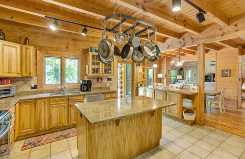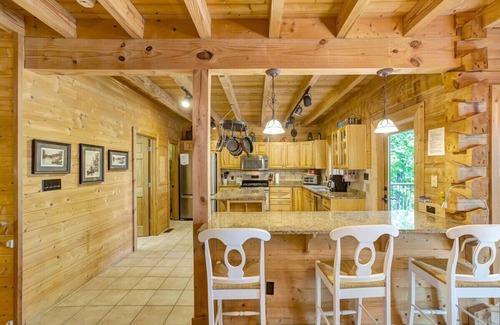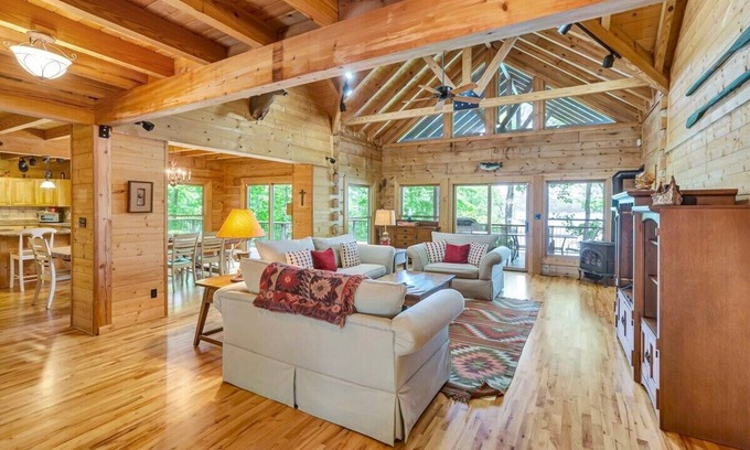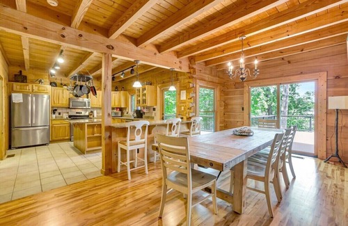 Located at the north end of beautiful Lake Keowee is this 6000 square foot log cabin that can sleep up to 20 people in beds. Yep... 20! No sleeper sofas, no blow-up mattress or roll away beds. The setting is beautiful with lush hardwoods surrounding the home and a natural setting great for bird watching and enjoying the outdoors. If it is the sunshine you are longing for, the double decker dock will provide a great spot for sunning the day away.