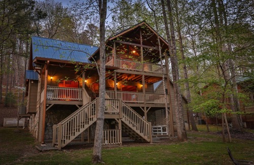 Deer River Retreat - with 2 king bedrooms located on separate floors, it makes for a perfect couples retreat. A great covered back porch overlooking the river provides a great place to sit, relax, listen and admire the waters of the Coosawattee. On a hot day take a dip in the cool mountain waters or grab your kayak or tube and explore what the river has to offer. Of course many a fisherman enjoy throwing their line in the waters hoping for "the big one". Whatever brings you to this cabin, you won't leave disappointed.