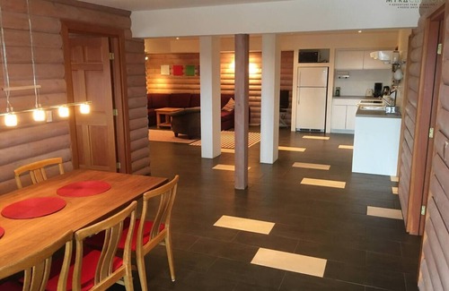 92 sq.m. common room with full featured kitchen incl. range, microwave. fridge/freezer and a large patio area.