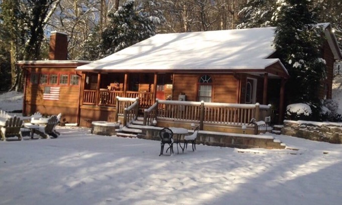 Deerfield Cabin is secluded yet 1 block from downtown Helen! We are truly in the center of the city. Come sit on our rocking chair front porch or huge patio, enjoy the firepit, play a game of cornhole or horseshoes. You can grill under our pavilion, keep your drinks cold in the fridge and eat at our custom made picnic table. You can listen to the subtle sounds of music and laughter while feeling secluded from it all or, walk a block and you can be right in the middle of it all! The best of both worlds. Park your car in the driveway and you won't need it again until you leave. Everything is close, shopping, restaurants and bars with fabulous food or walk 2 blocks to Betty's Country Store and pickup whatever you need, such a cool store to visit.So much to do and see just steps away.