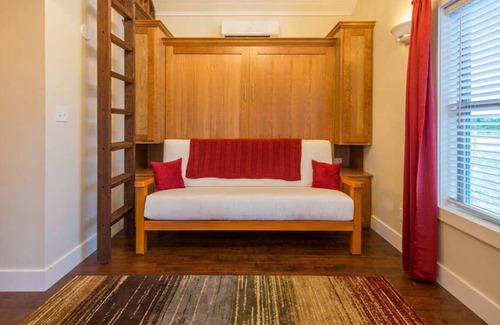 Deerfield Cabins is a gathering of 6 lodges all built on a tiny home concept, without compromising comfort or losing the space to relax. Each cabin sleeps 2 people in a custom-built, fold-down Murphy bed with an incredibly comfortable Arapahoe® king-size mattress. The loft holds a double bed suitable for 1 to 2 children (or an adult who doesn't mind a ladder).