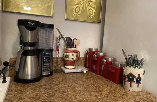 The Deland Marigold House, a beautifully furnished 1 bedroom 1 bath House has everything that you need for a nice stay in DeLand and sits in the rear of the well maintained grounds of The Marigold. The bells of St Peters Church add to the peaceful and quiet setting in the center of Deland, just a few minutes walk to the shops and restaurants of the beautiful downtown and Stetson University. This centrally located property gives you easy access to everything Central Florida has to offer. Owners Bill and Erin are close by so let them know if you need anything special for your stay.