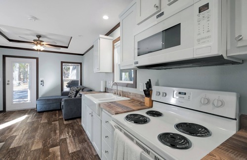 Discover Your Tranquil Haven: Charming 1-Bedroom Tiny Home Nestled in a Peaceful Interior Retreat. Enjoy a Queen-Sized Bed, Fully Equipped Kitchen, Propane Grill, and Cozy Patio Seating.