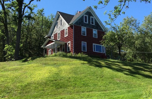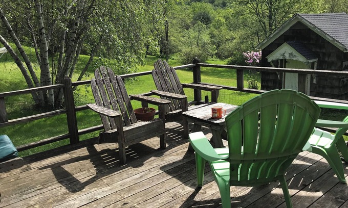 NEWLY AVAILABLE FOR THANKSGIVING OR XMAS/NEW YEAR HOLIDAYS. Private, charming country getaway in Roscoe, great for making family memories. Curl up in front of the fire, prepare big family meals, relax on the front porch/large back deck or in our hammock, wander the acres of woods and fields on the beautiful property, or visit nearby towns of Livingston Manor/Roscoe/Callicoon with their restaurants, boutiques and historic movie theater. With 5 bedrooms including 1 full bed, 2 queen beds, 1 bunk bed, and 1 twin bed, there's plenty of space for all guests. Full country kitchen with working vintage appliances, breakfast nook, plus a separate dining room that seats 10, all dishes/cookware/kitchen basics supplied. The 2 bathrooms come equipped with towels, toiletries and hair dryer for your convenience. Additionally, there's a living room with an extra twin bed for another sleeping option. Get away to the beauty and quiet of the Catskills for a country holiday to remember!