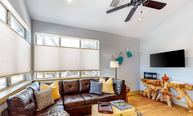 Looking to be close to the action? This cottage above a carport is your next Austin retreat. You're less than a half mile to the Austin Convention Center and Hilton Hotel and less than a mile to JW Marriott. Shopping and various restaurants are merely three blocks away, while nightlife destinations on 6th Street and Rainey Street are within one mile!