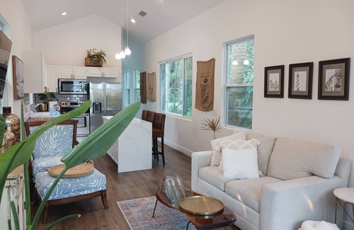 Beautiful, newly-built cottage in Historic Downtown St. Augustine, steps from the marina and surrounded by top attractions, the best restaurants, unique shops, galleries, and more. Magically serene and peaceful neighborhood next to all of the best spots downtown. The sky is clear for stargazing at night and you can often see horse-drawn carriages drive by this prime downtown location. Enjoy your morning coffee on either of the relaxing porches. Often birds and owls find peace in the tall canopy in the backyard.
