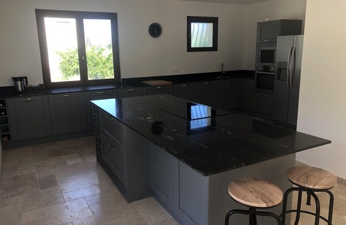 Villa Alais is located in a charming village near St Chinian in the middle of Wine country. In summary the Villa offers a HUGE fully equipped family kitchen, dining room with seating for 8, large lounge with plenty of comfy seating and twin french doors opening onto the front terrace. The house is fully furnished, in addition to a full stock of modern conveniences including wifi, widescreen HD TV