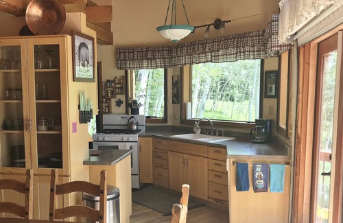 Our 3-bedroom, 3-bathroom cabin style home offers very affordable accommodations, only minutes from Telluride. Secluded 2 acre lot at 10,000 feet, with fabulous views of the San Juans Mountains, towering aspens and spectacular sunsets enjoyed through the large floor to ceiling windows. All the amenities, including a gas and wood fireplace, large high-def TV, high-speed wireless internet, wifi and plenty of parking. At a fraction of the price of in-town facilities (we like to support affordable rates for our families) you will appreciate easy access to Telluride's festivals and fabulous dining yet relax in peace and quite at the end of the day. The world class Telluride Ski Resort is just five minutes away. Bike, hike or just hang out at one the world's most historic resort towns. This is your home away from home.