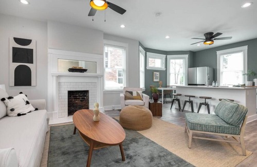 We are located on a quiet residential street 3 minutes north of downtown. Many of the residents on our block are owner-occupants. There is a playground across the street. The area has been undergoing gentrification, with a number of recently renovated homes (including this one), but please note that you will still see some homes that need work.