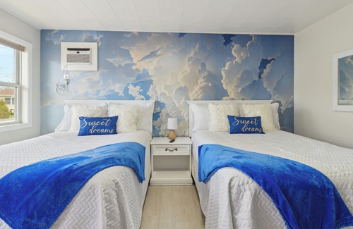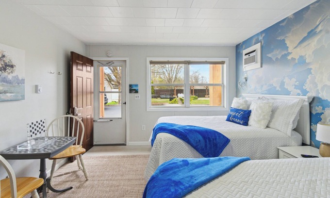 Enjoy a relaxing stay in this comfortable room at Pleasant Valley Resort, featuring two double beds and a private bath. Stay cool with air-conditioning and a ceiling fan, and keep entertained with cable TV and free WiFi. A cozy seating area is perfect for unwinding after a day of exploring. For added convenience, the room includes a refrigerator, microwave, and coffee maker—everything you need for a restful and hassle-free getaway.