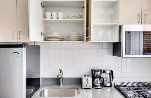 Thoughtfully designed with bespoke finishes, modern furnishings, and a fully equipped kitchen, you’ll enjoy that “I’m home” feeling with this Blueground apartment. Whether you’re lounging in your stylish living room streaming the latest and greatest entertainment on the smart TV or premium wireless speaker, or getting some well-earned rest on the superior quality mattress with luxury linens, you’ll fall in love with everything this Bowery apartment has to offer. This apartment also offers in-apartment laundry.