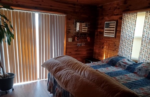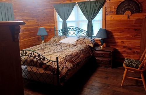 Beautiful isolated 57 acres with river access. Hunting, fishing, swimming, A.T.V. trails. Comfortable well equipped home with large deck, grill, fire pit. Fish in the stocked pond or drive down to the river. Working horse ranch with 4 friendly horses on property. Pet friendly if your pets can get along with them. Bring your a.t.v. and ride the river or catch a catfish to grill. It's a get away place so you are not going to have good phone service.
