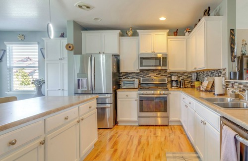 Complete with a well-equipped interior, a private backyard, and a central location, this 4-bed, 2.5-bath vacation rental is the perfect place to call home as you explore the best of Colorado. From Dick’s Sporting Goods Park to the Rocky Mountain Arsenal National Wildlife Refuge, Aurora offers plenty of options for entertainment. Plus, you'll have easy access to top Denver attractions like Meow Wolf and Ball Arena!