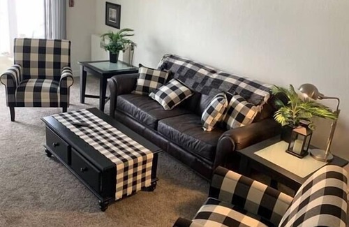 Alexander & Bishop Hospitality presents this spacious, stylish, and over 3× larger than a typical hotel room, this updated unit offers comfort and convenience with premium toiletries, coffee, a 65" HDTV, and fast Wi-Fi. Located near highways and shopping for easy access anywhere. 24/7 contactless, keyless check-in for a hassle-free stay.