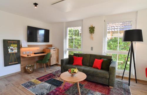 Providing a garden, DER OCHSEN provides accommodations in Kappel-Grafenhausen. Offering free private parking, the 5-star condo hotel is 3.7 miles from Europa-Park. The condo hotel also offers facilities for disabled guests. Featuring free Wifi, the units have a safety deposit box, a washing machine, and a flat-screen TV with streaming services. The rooms are fitted with a coffee machine, while selected rooms will provide you with a fully equipped kitchenette with a dishwasher, an oven, and a microwave. Additional in-room amenities include wine or champagne, fruit, and chocolates or cookies. À la carte and continental breakfast options with warm dishes, local specialities, and fresh pastries are available. A grocery delivery service, a mini-market, and packed lunches are available upon request. For guests with children, the condo hotel offers a baby safety gate. Ski storage space is available on-site, and both skiing and cycling can be enjoyed close to DER OCHSEN. Messe Freiburg is 21 miles from the accommodation, while Rohrschollen Nature Reserve is 23 miles away.