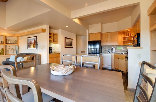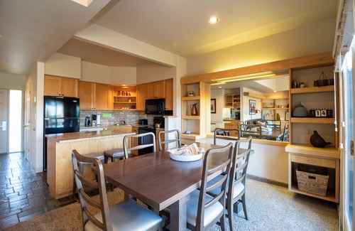 When entering the condo, you will be greeted by an open space with plenty of natural light, room for the whole family to warm up by the gas fireplace, watch your favorite show or movie, or move out on to the private deck where you can relax in the private hot tub or grill up a tasty meal, while enjoying the view of the Deschutes River.