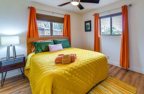 Welcome to this stunning 2-bedroom, 2-bathroom vacation rental house in Mesa! With its stylish interior, brightly colored decor, and porch, this cozy abode is the perfect getaway for relaxation. When you arrive, watch your shows on the Smart TV and grill up a delicious meal outdoors. Then, go hiking at Usery Mountain Regional Park, shopping at Mesa Riverview, or visit the Mesa Arts Center. Whether you're looking for adventure or tranquility, this house is the best base for your retreat.