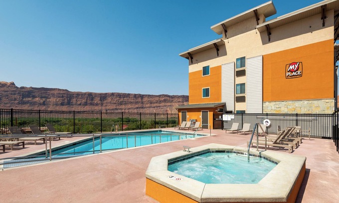 Best-rates for the Moab hotel starts from $153 per night with includes Guest Services, Child Friendly, Internet, Kitchen, Pool, TV, Laundry, Barbecue/Outdoor Cooking, Air Conditioner, Wheelchair Accessible, Security/Safety, Wellness Facilities, Hot Tub, Parking, Accessibility, Bedding/Linens, Fireplace/Heating StayAndPlay offers fully equipped golf villas, golf hotels, golf resorts, luxury golf cabins, and exclusive golf retreats, making it easier than ever to find your perfect golf escape — ideal for families, peaceful getaways, or pet-friendly retreats with the whole crew.