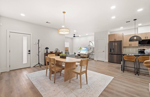 Desert Rose Dream Home is a newly constructed 3-bedroom retreat, professionally designed with a unique desert inspired theme. The spacious master bedroom comes with a private entrance. Enjoy the beautiful, cool patio and spacious indoor-outdoor living areas, perfect for families seeking privacy yet wanting to stay close together. Located in the vibrant East End District, this home is just minutes from downtown. Cozy tiny home 1 bedroom apartment is also available to rent separately or together!
