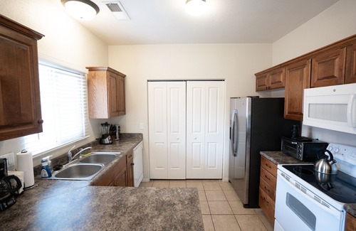 Experience the healing magic of Southern Utah from this perfectly positioned condo in the heart of the beautiful red rock cliffs of Kanab: your gateway to Zion, Bryce Canyon, and the Grand Canyon. In addition, the Coral Pink Sand Dunes, Best Friends Animal Society Reserve, & countless other incredible experiences are right close by. Relax after a day of adventure in the pool & hot tub. Less than a mile away from downtown Kanab, enjoy the restaurants, galleries, Old-Hollywood history & more!
