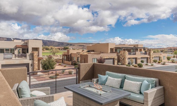 Featuring massage services, Desert Skies features accommodations in St. George. Both free Wifi and parking on-site are available at the villa free of charge. The villa offers an outdoor swimming pool and a concierge service. Offering a balcony with mountain views, this villa also has a cable TV, a well-equipped kitchen with a dishwasher, an oven, and a microwave, as well as 4 bathrooms with a bath and a hair dryer. For added privacy, the accommodation features a private entrance. Sightseeing tours are available around the property. St. George Temple is 8.4 miles from Desert Skies, while Brigham Young Winter Home Historical Site is 7.5 miles away. St. George Municipal Airport is 17 miles from the property.