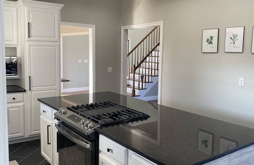Six bedrooms on three floors, 3 1/2 baths, and two kitchens, two living areas, large furnished upper deck with grill, beautiful lower deck with seating and fire pit, wrap around front porch. Pool table room, darts and corn hole, 70" Fire TV with sound bar in basement, 55" Fire TV on main floor in living room, gas log fireplace and high speed internet.