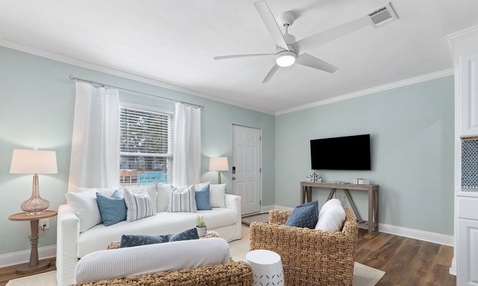 Get ready to live the coastal life in this professionally designed and decorated 3-bed bungalow in a waterside neighborhood. It’s ideal for couples or a family looking to relax in Pensacola, and for work colleagues seeking inspiring surroundings.