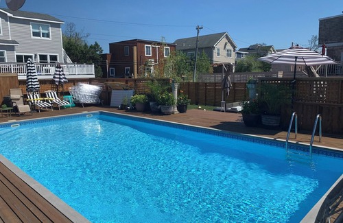 Authentic Designer Home in Ocean Beach with 5 bedrooms awaits. Sleeps 10 Very Comfortably. This charming stylish home features 2 king beds, 2 full beds, 2 twin trundle beds & two full bed pull out couches. It’s perfect for families or groups of friends. With 3.5 bathrooms equipped with hair dryers, everyone can freshen up comfortably. My favorite is the Ideal kids loft or use as an inspirational work space perched overlooking a large and inviting pool. This space comes complete with a tv and 2 additional twin bean bag beds. Enjoy a sun drenched sitting room in the master suite, complete with an additional fridge. We are confident you'll enjoy your stay at our phenomenal beach house. Challenge yourself with chess or is golf your game? We offer a small portable putting game, and tennis rackets to be used at the local court. Dazzle your guests with a homemade pizza, all necessary utensils are included. The perfectly manicured property and outdoor space is equipped with an outdoor bar, ice machine, coolers, a large built in pool and hot tub which creates an ideal venue for entertaining. End your day with an outdoor shower under the sun. This sanctuary is secluded behind giant evergreen trees. Your ideal Ocean Beach getaway is steps from a thriving town with the most amount of bars, boutiques and restaurants on Fire Island. It’s definitely our happy place and we’re confident it will be yours.