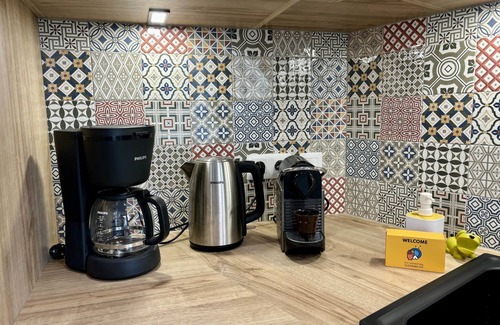 The flat is ideally furnished and fully equipped to make your stay as comfortable as possible. You'll have a fast WiFi connection to keep you connected, a coffee machine to get your day off to a good start, and a TV for your moments of relaxation. The kitchenette is fully equipped with an oven, microwave, dishwasher and washing machine, ensuring you have all the comforts of an extended stay. A hairdryer and iron are also available.