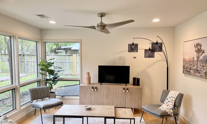 Designer House in Central Austin is located in Highland. Designer House in Central Austin provides accommodation, featuring Bedding/Linens, Wellness Facilities, Fireplace/Heating, among other amenities. This House features Bedding/Linens, Wellness Facilities, Fireplace/Heating, to make your stay a comfortable one.