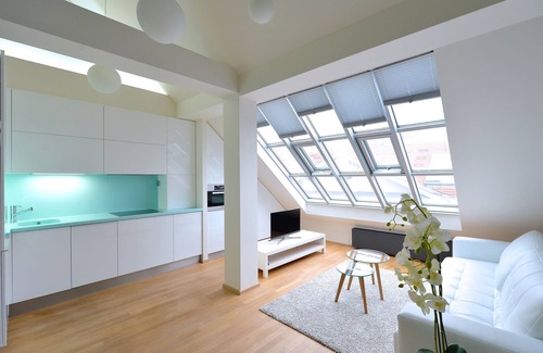 A BRAND NEW LUXURIOUS LOFT AT WENCESLAS SQ. APARTMENT: This loft is after a complete renovation and it has been reconstructed with a considerable attention. All chairs are original by Vitra so no plastic unstable replicas. The windows could be opened with a remote control. There is air-conditioning in the whole apartment to regulate the temperature during the summer. In the winter, the apartment is heated with radiators - which are gray to fit the design of the place. The location can hardly be any better since the apartment 40meters away from Wenceslas Square. There is a very small elevator which goes to the 4th floor and it can only fit two people. From there, you need to walk one floor up to the loft. All the appliances are by MIELE (dishwasher, stove,...) various types of coffee All utensils Tea Coffee Salt Pepper Hot Chocolate Interactive flatscreen wifi-smart TV Extra-High speed wifi internet (100MB/s) Sheets Linens Towels (1 big + 1 small/person) SLEEPING OPTION: one double bed and one single bed in the bedroom (one is not in the pictures) a pull out sofa which sleeps 2 people and is 140x200cm (very comfortable for daily sleeping) Grocery shop right in front of the apartment. All the shops and restaurants are on the same square. The apartment itself is very quiet since it is on the 5th floor. If you happen to forget your laptop, the TV could be used as a computer. You can search on (website hidden), chill out with a glass of wine and listen to the in build jukebox or synchronize your camera and take the first look at your pictures of Prague. ........................................................ Distances on foot: Wenceslas Square - 10 seconds Old Town Square - 5 minutes Charles Bridge - 10 minutes ---------------------------------------- This apartment is within walking distance from the train station and all metro lines (A,B,C). Excellent connection from both, the train station and the airport.