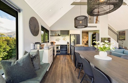 Stylish 3BR Arrowtown retreat with spectacular mountain views from sun-drenched terrace. Thoughtful design meets mountain living with seamless indoor-outdoor flow, cozy wood burner, and two modern bathrooms with underfloor heating. Well-appointed kitchen and comfortable bedrooms with quality linens. Minutes from historic Arrowtown`s boutiques and award-winning restaurants, 15min to Coronet Peak skiing, 20min to Queenstown. Perfect base for design-conscious travelers exploring Central Otago`s wineries and adventures.