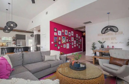 Masterfully remodeled top to bottom, inside and out in 2023, our property was once a historic, prized turkey ranch in the early 1900's. The designer decor honors the property’s history and our love all things Texas and Mexico while featuring modern amenities with whimsically styled & comfy twist. Our quiet & safe neighborhood ensures you’ll enjoy serene privacy amongst glorious TX nature.