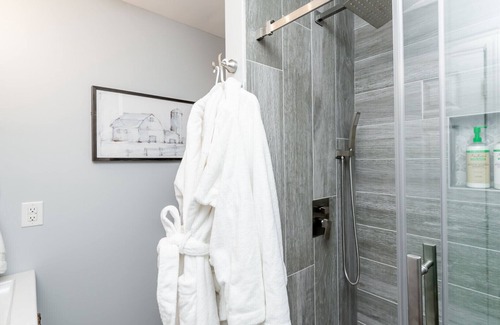 Each bedroom has a TV and a large TV in the living room. Each bedroom has an attached en-suite bathroom. You can enjoy the brand-new walk-in showers with removable shower heads after a day visiting distilleries, fishing, or sightseeing. Each room has a piece of furniture to unpack your clothes or a bench to lay out suitcases on for easy access.