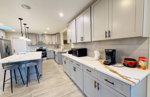 Welcome to your fully remodeled bayou-front escape in Dickinson TX ! Discover this tremendous 5-bedroom gem in Dickinson. This tranquil villa boasts 1 king bed, 3 full beds, 1 queen bed, and 1 twin bed,3.5-bathroom home is perfect for families, fishing getaways or group vacations-with room for up to 11 guests and your furry friends too. fish or crab right from the yard, enjoy morning coffee by the bayou, fresh seafood from your own catch, and sunsets over the water. Bring the whole family to this completely updated modern home with lots of room for fun.