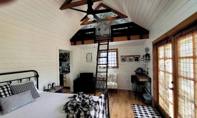 Step into a fun and cozy dinosaur-themed retreat just blocks from Glen Rose's Historic Square, with local shopping and dining just a short stroll away. Perfectly located near top attractions -- only 4 miles to Dinosaur World, 5 miles to Fossil Rim Wildlife Center, and just 1 mile to Big Rocks Park. This thoughtfully designed guesthouse sleeps up to 5, featuring a comfortable queen bed, two convertible chair sofa beds, a cozy loft ideal for kids, and a toddler cot. The kitchenette includes all of the essentials -- sink, mini-fridge, microwave, coffee maker, toaster, and a hot plate. Relax in the private backyard with a seating area and charcoal grill, perfect for winding down after a day of adventure.