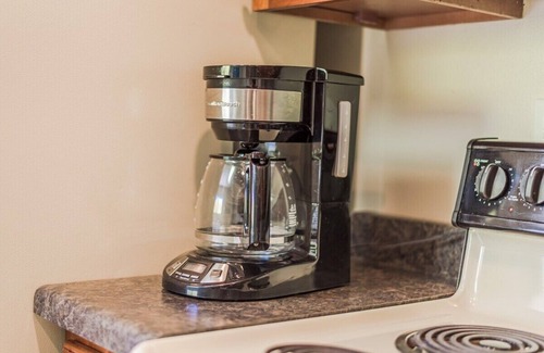 • has a dishwasher, toaster, coffee maker, microwave, stove, and oven
