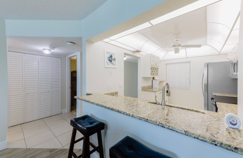 Updated condo, 7th floor, direct oceanfront in gated community on North Hutchinson Island. Gorgeous ocean views and steps to the beach! The home has 2 Bedrooms and 2 full bathrooms, has a fully equipped kitchen, including coffeemaker, stainless appliances, granite countertops, side by side refrigerator with icemaker in the door, and microwave.