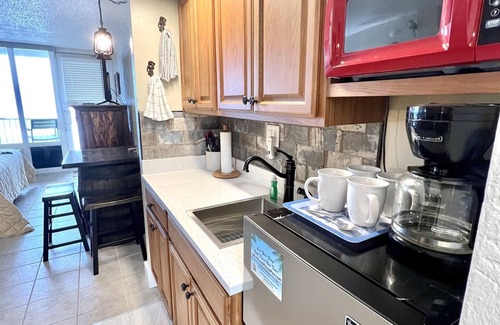 Embark on a maritime adventure at our pirate-themed studio on the 3rd floor of the Pirate's Cove building in Daytona Beach Shores. Boasting direct ocean views, this fun-filled efficiency condo invites you to live like a pirate of yore—complete with modern luxuries for your comfort.